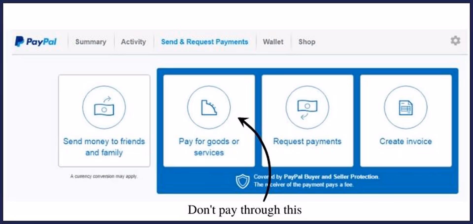 This is a huge red flag. First of all, this is an excellent way to get your PayPal account suspended, since it is a violation of PayPal’s terms and conditions. The bigger concern though, was that money sent as "Friends and Family" has no buyer-protection on it at all. That means once the supplier received payment, they would be under no obligation to provide any refund or product whatsoever. Basically, our partner would have had no recourse to recoup payment.