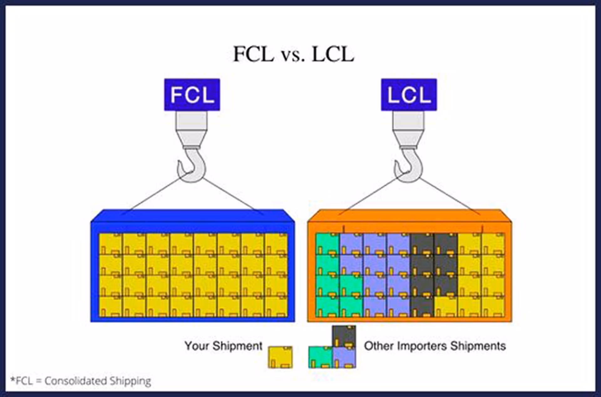 First, LCL shipments are more expensive per unit than if you take advantage of consolidated shipping by using full container load (FCL) shipments. You only pay for a container a single time and only have to track a single order while it is in transit.